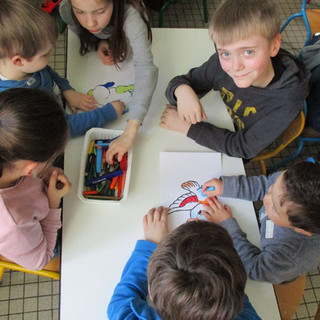 Les vendredis 22 et 29 mars, les élèves de CM1-CM2 sont descendus dans la classe de TPS-PS pour réaliser un travail en arts plastiques avec leurs camarades de petite section.